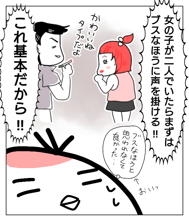 可愛い娘とそうでもない娘が二人でいた場合、そうでもないほうに先に声をかけてその気にさせ、男性の味方に引き入れるという王道のやり方なんですって😱!