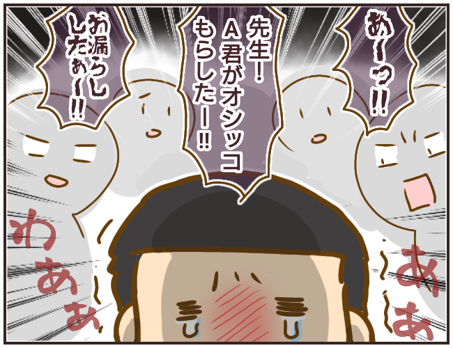 A君は我慢できずに漏らしてしまいました。