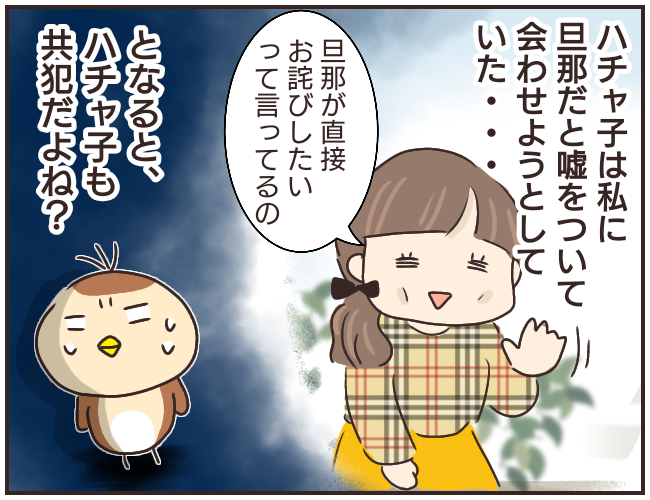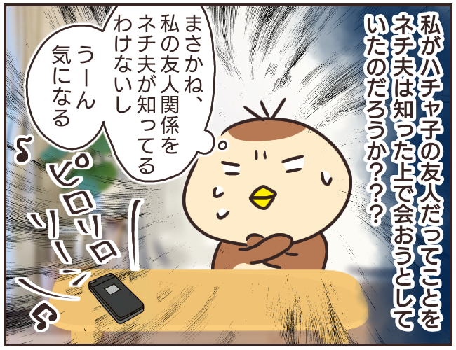 電話の相手はハチャ子の旦那さんでした。